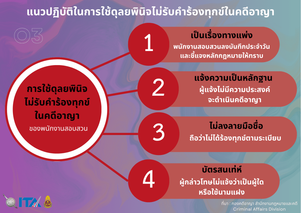 แนวปฏิบัติในการใช้ดุลยพินิจไม่รับคำร้องทุกข์ ในคดีอาญา