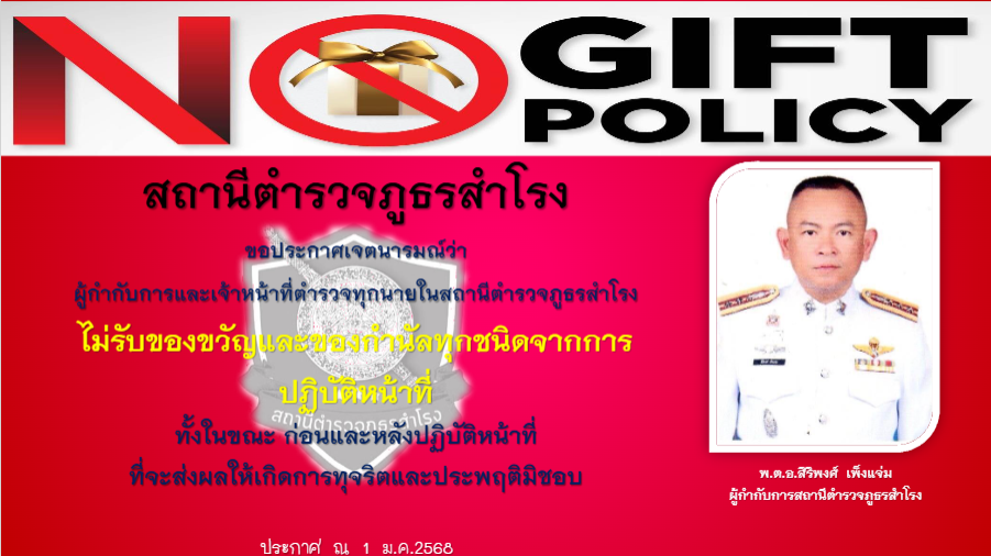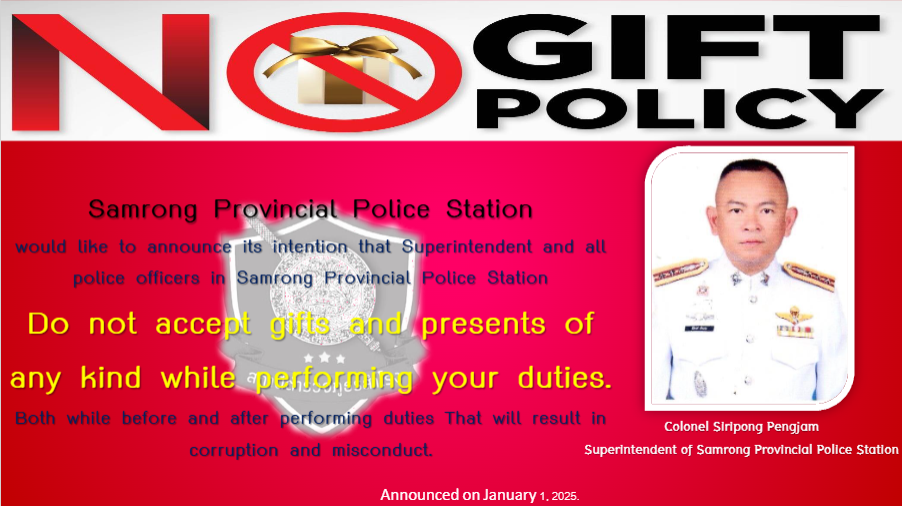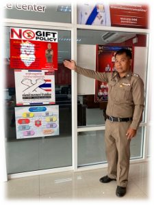 การแสดงอินโฟกราฟิกนโยบายไม่รับของขวัญและของกำนันทุกชนิด (No Gift Policy) ณ จุดประชาสัมพันธ์